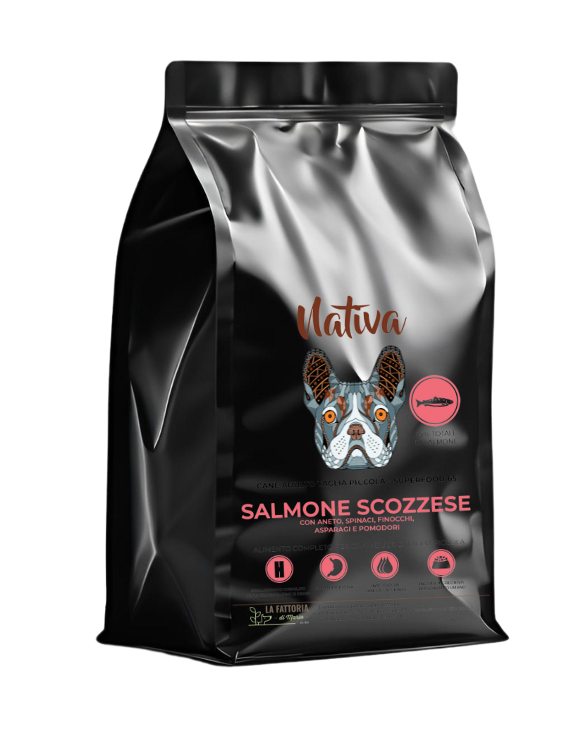 Cane Taglia Piccola - 65% Salmone Scozzese con Aneto, Spinaci, Finocchi, Asparagi e Pomodori
